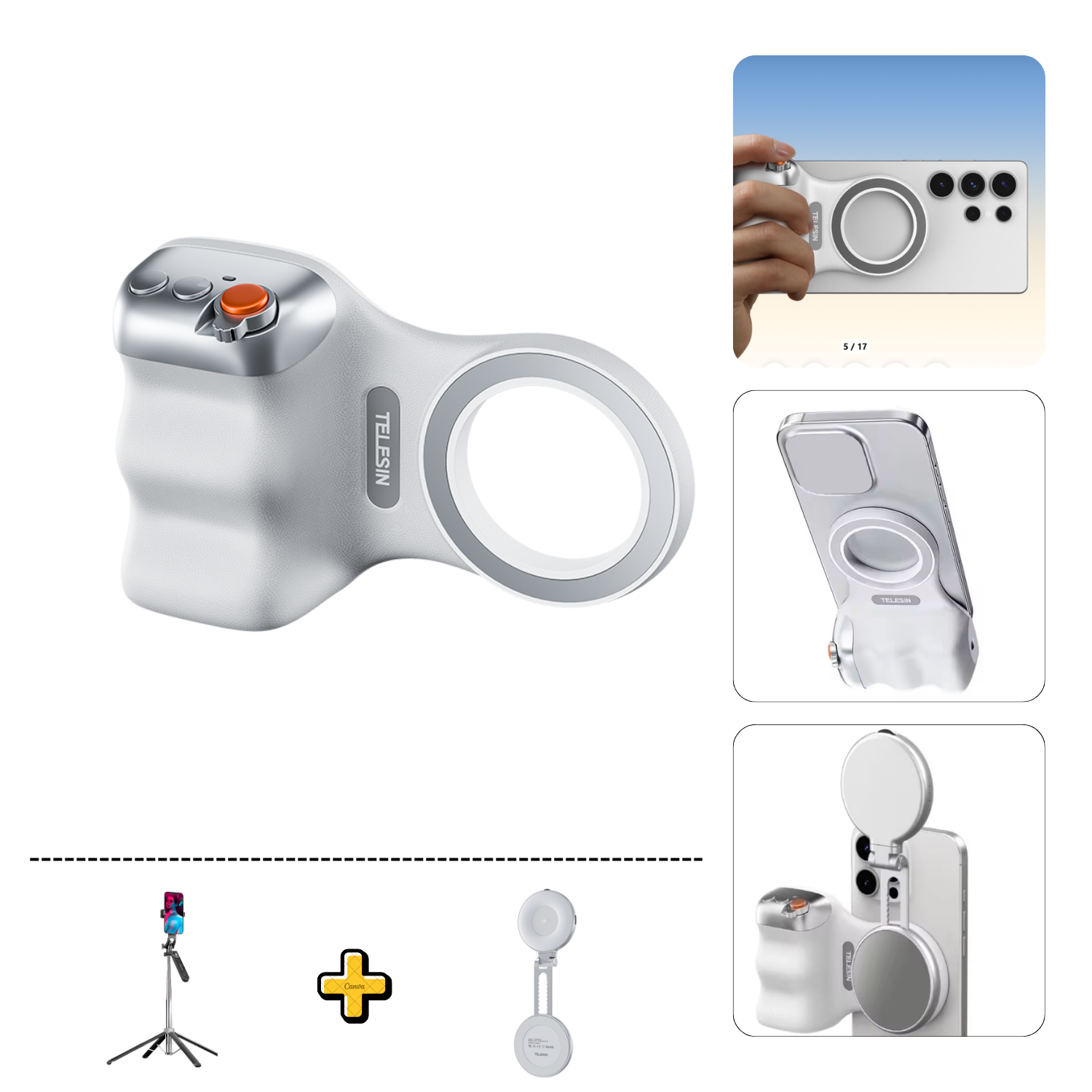 Sirve para grabar con el celular en la mano sin que tiemble. Sus imanes fuertes lo mantienen fijo y estable mientras caminas o haces tomas en movimiento. No necesita batería y mejora el agarre para grabar con más seguridad.