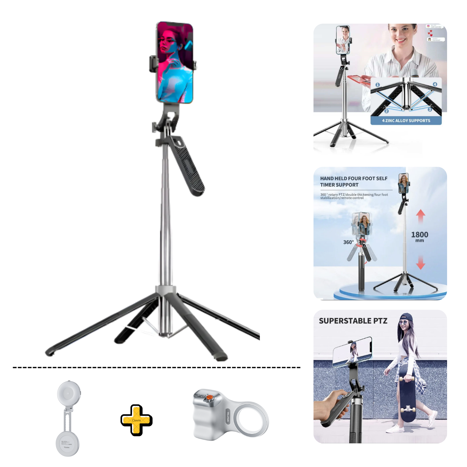 Sirve para grabar sin sostener el celular. Puedes colocarlo en el suelo o mesa, ajustar la altura y usar el control remoto para tomar fotos o grabar a distancia. Ideal cuando grabas solo.