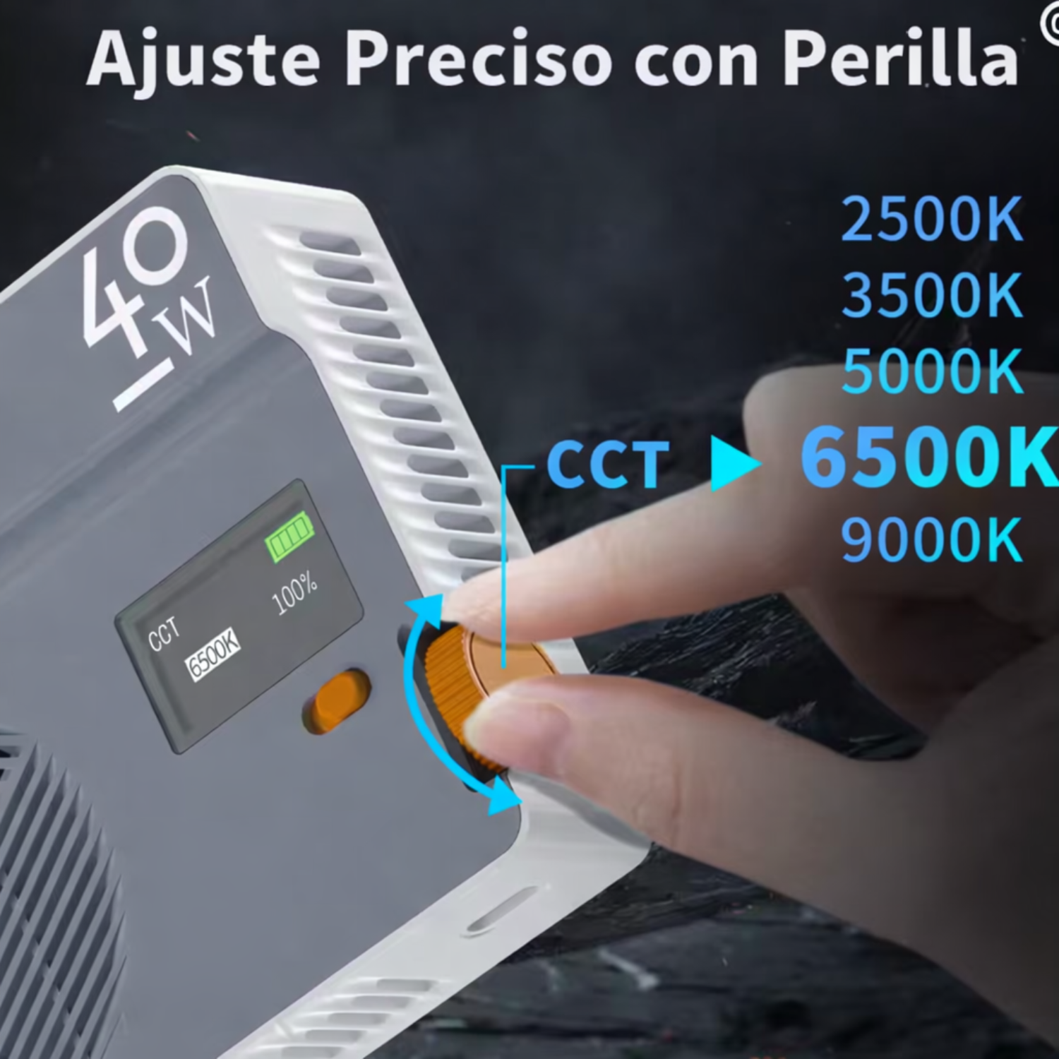 Potencia constante de 40W sin parpadeos, ideal para video profesional.