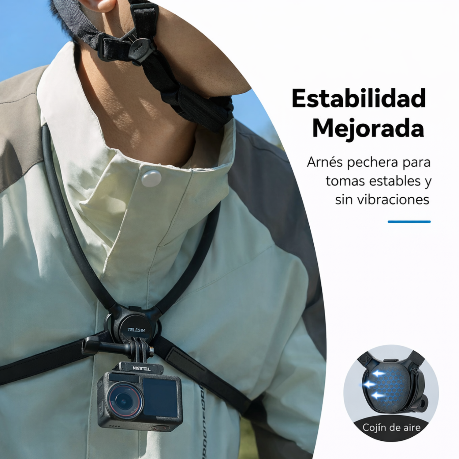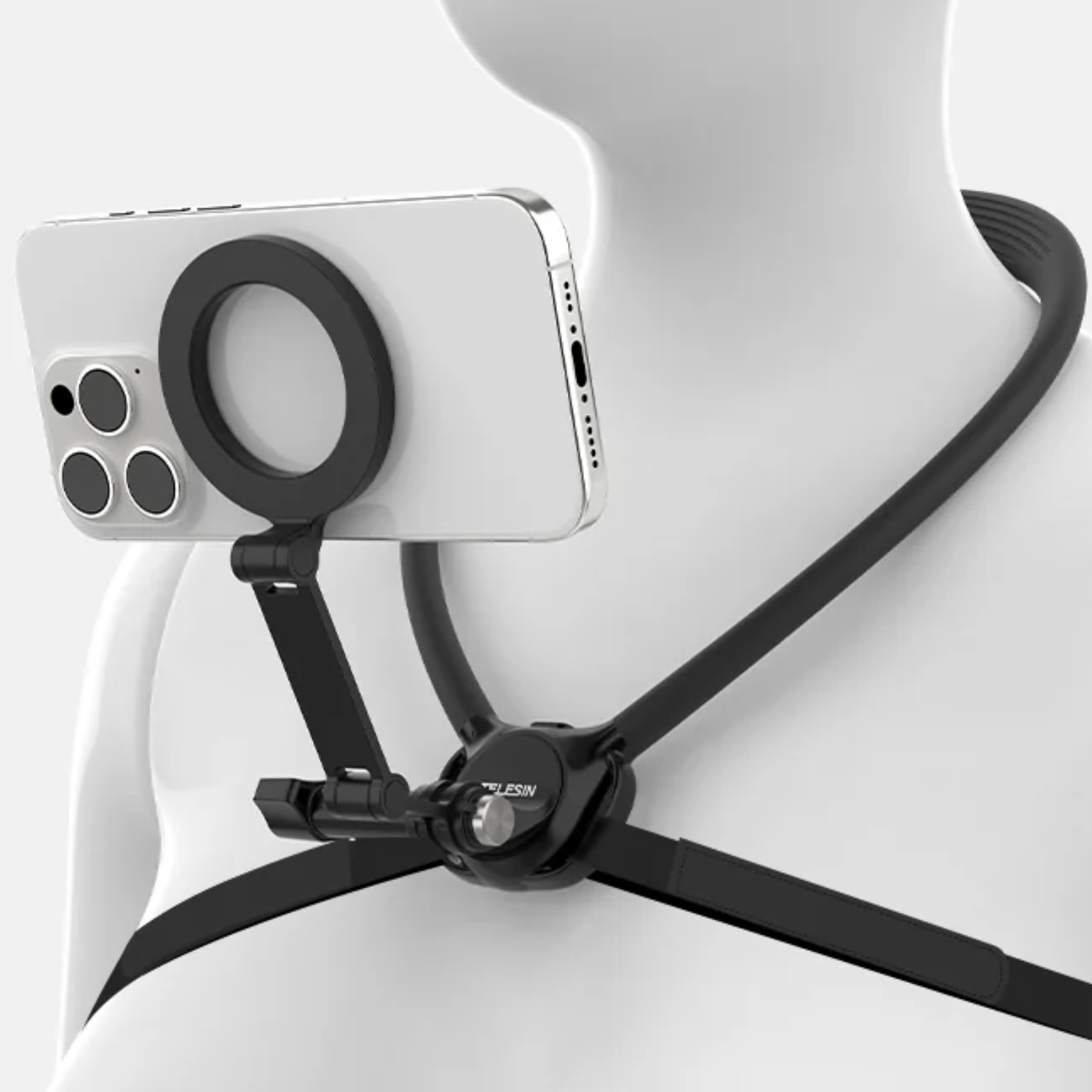 Sujetador Telesin diseñado para grabaciones en primera persona (POV). Compatible con cámaras de acción y celulares con sistema magnético tipo MagSafe. Ideal para grabar caminatas, ciclismo, viajes y contenido dinámico sin usar las manos.